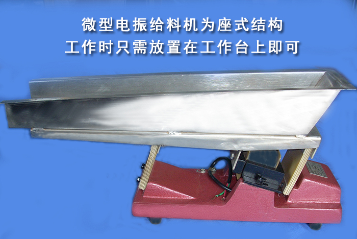 微型電振給料機為座式結構,工作時只需放置在工作臺上即可。另可在給料槽內增加一層或二層篩網,成為小型振動篩分設備。
